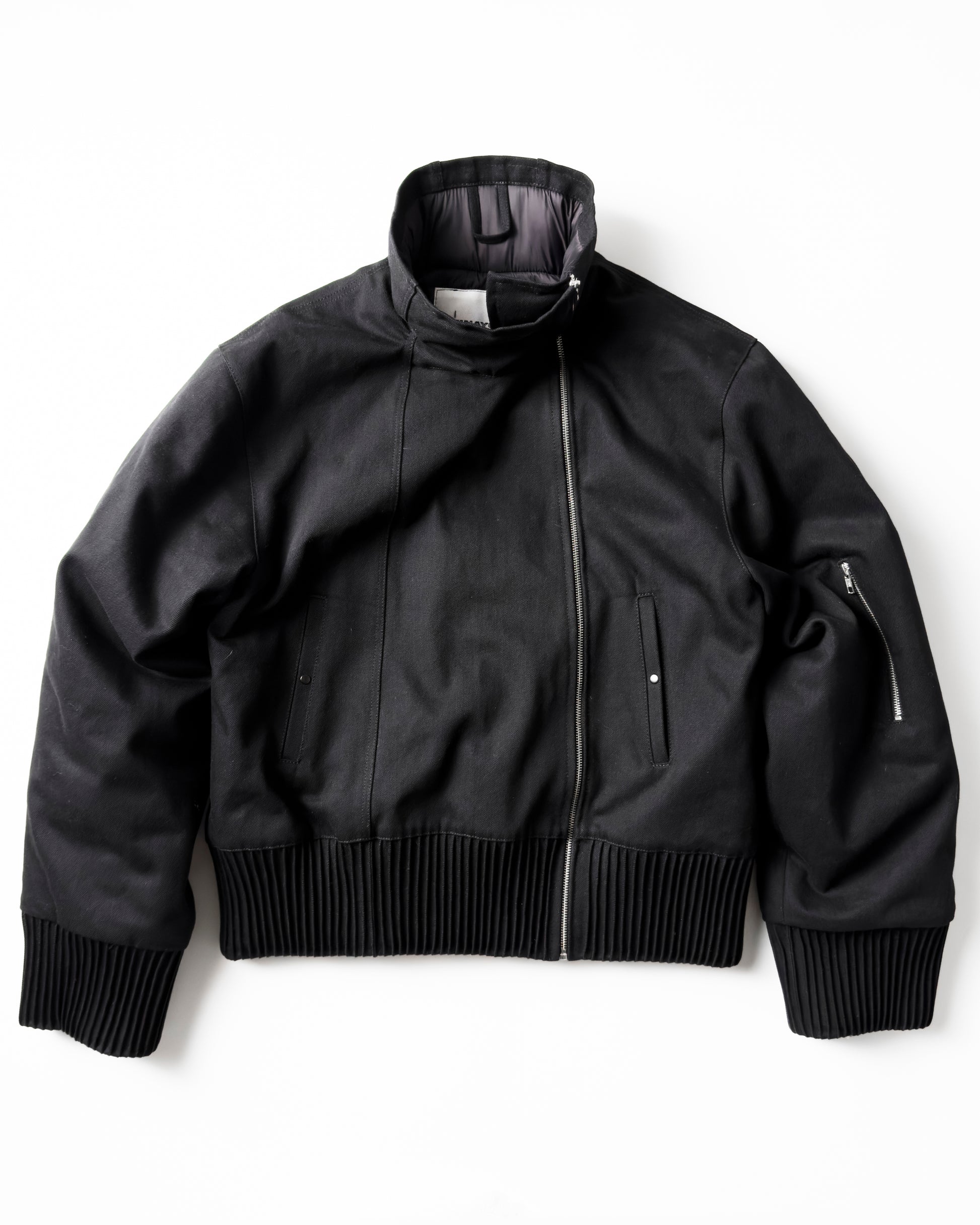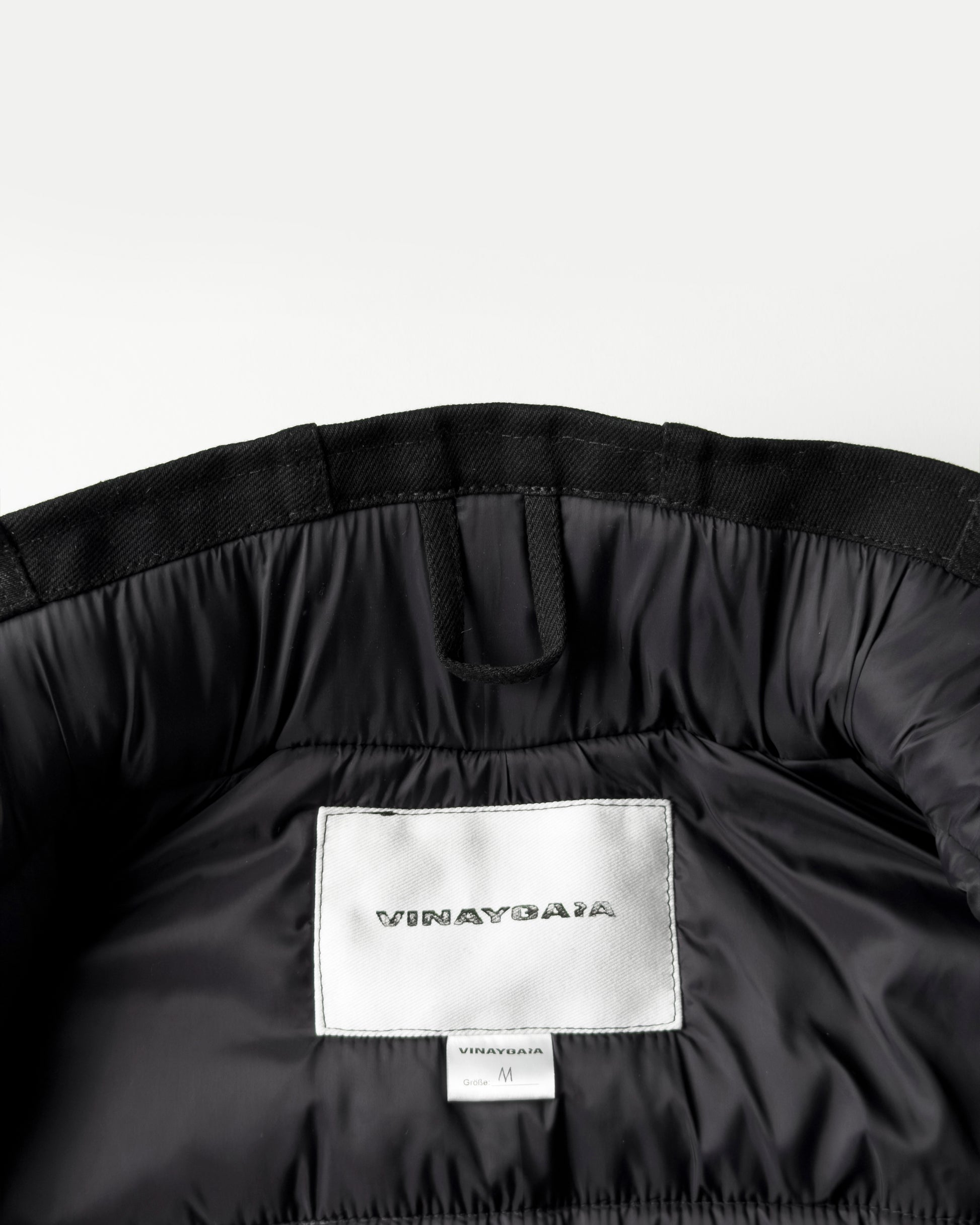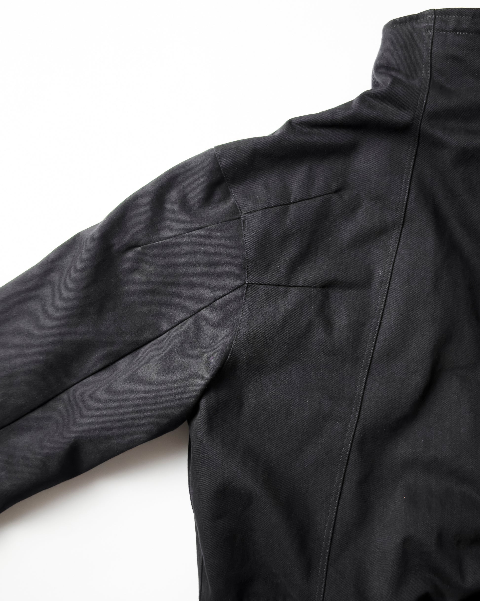 This handmade black denim winter jacket is waxed with natural beeswax for added water resistance — because style shouldn’t fear the weather.