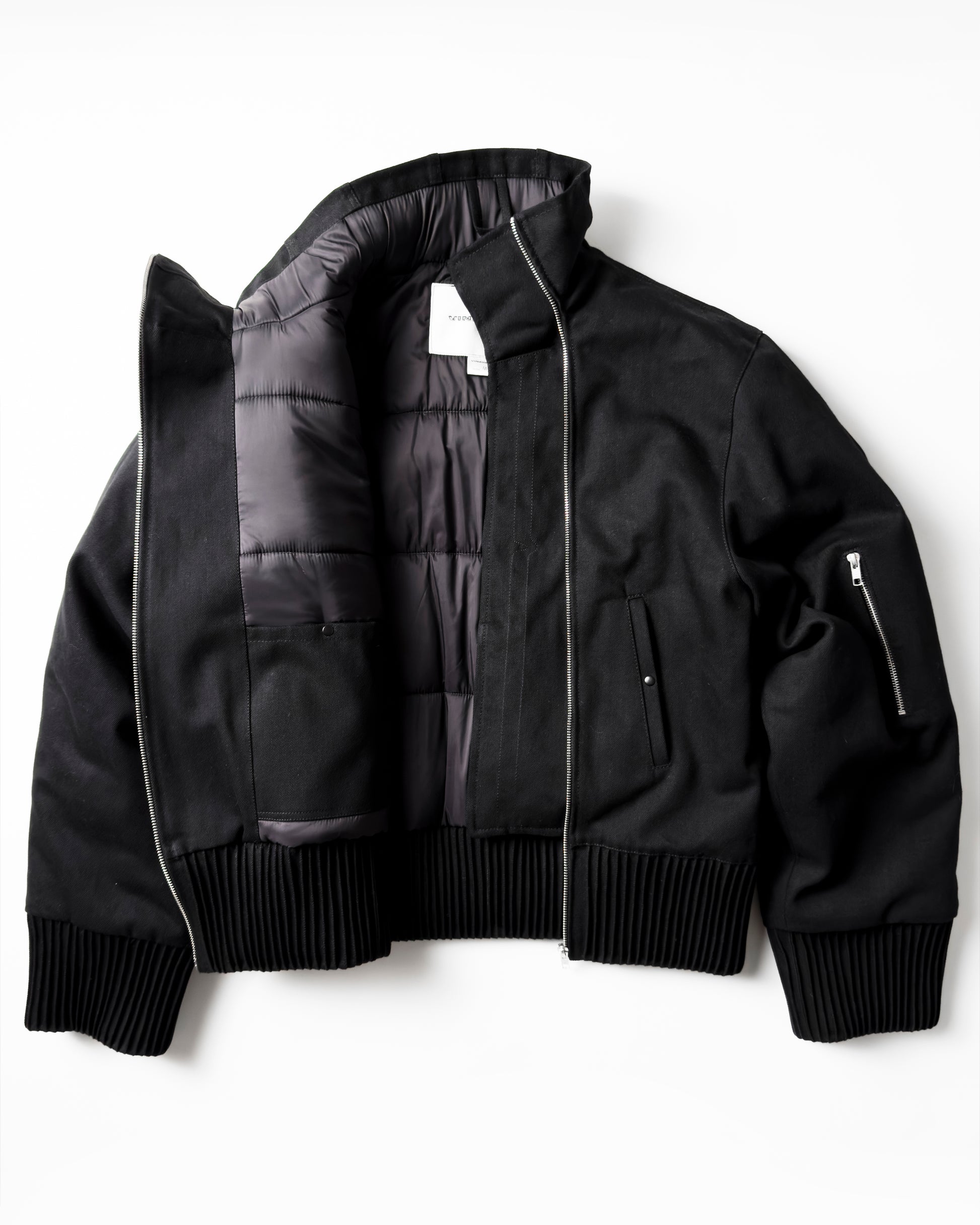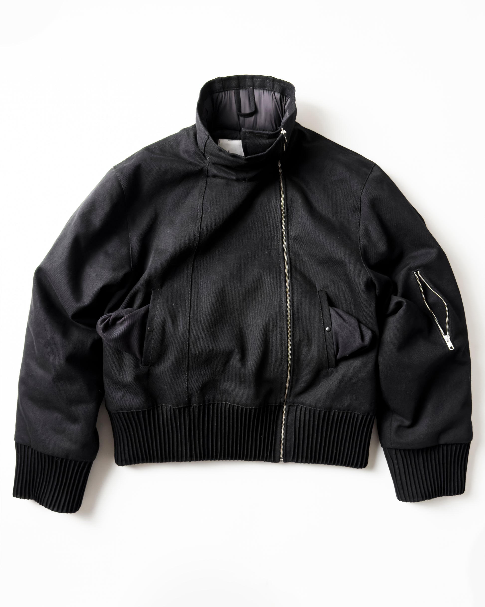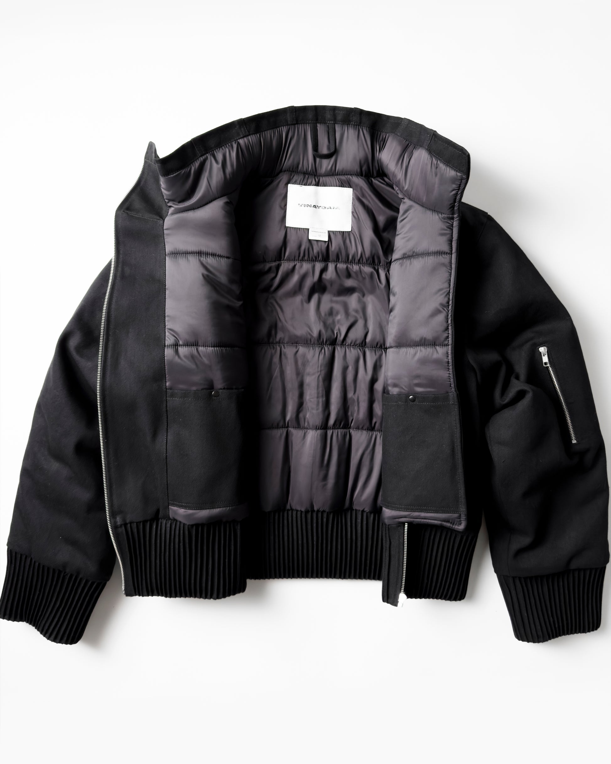 This handmade black denim winter jacket is waxed with natural beeswax for added water resistance — because style shouldn’t fear the weather.